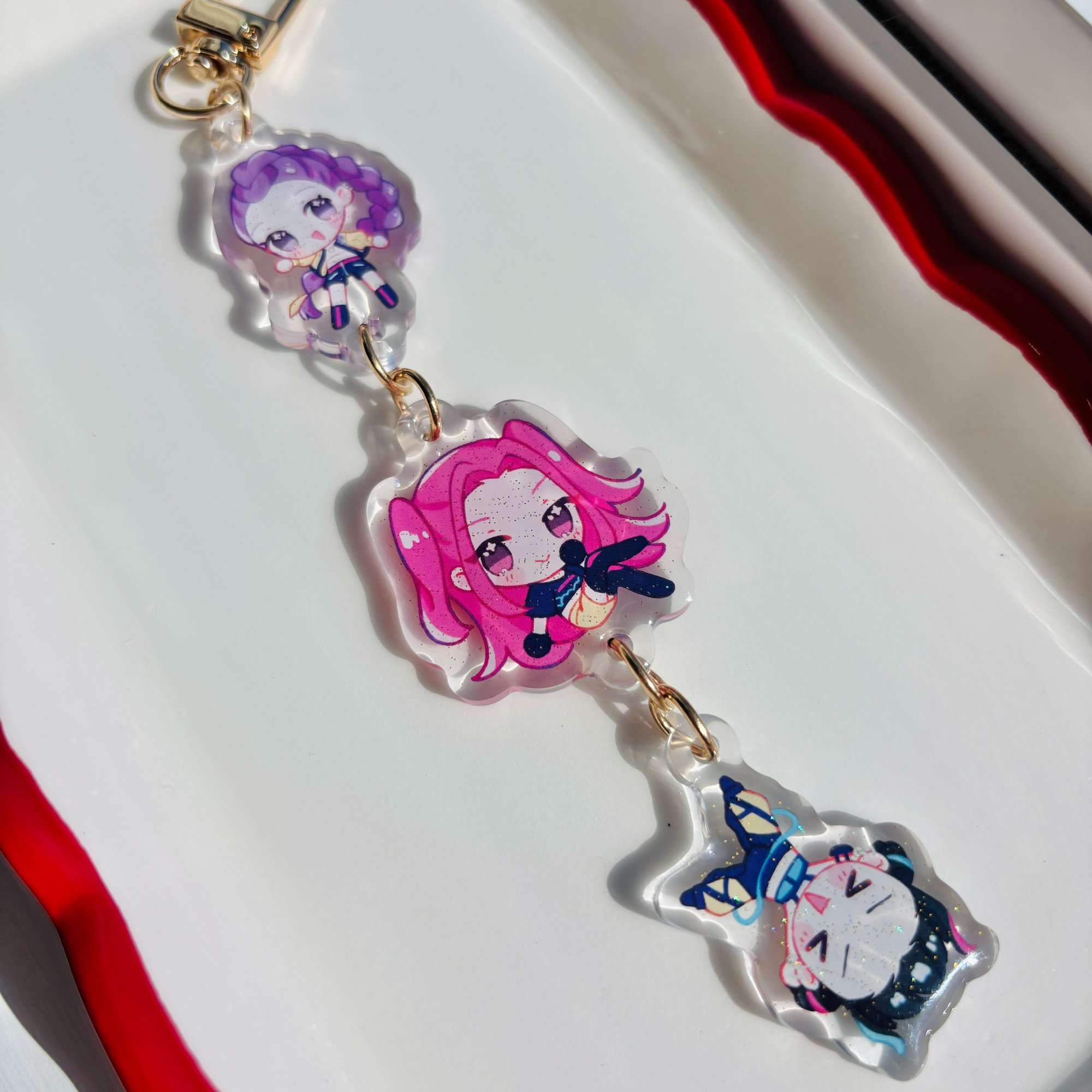 + double-sided charm with a glitter epoxy finish